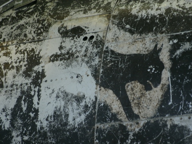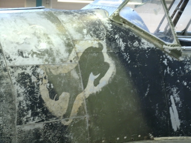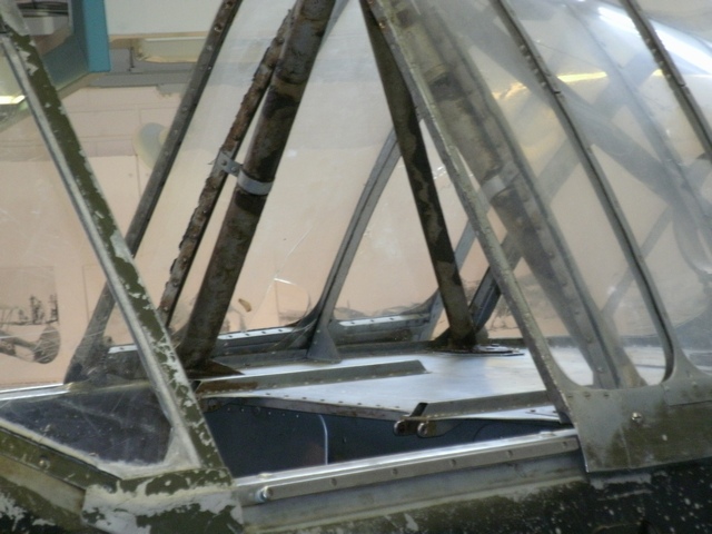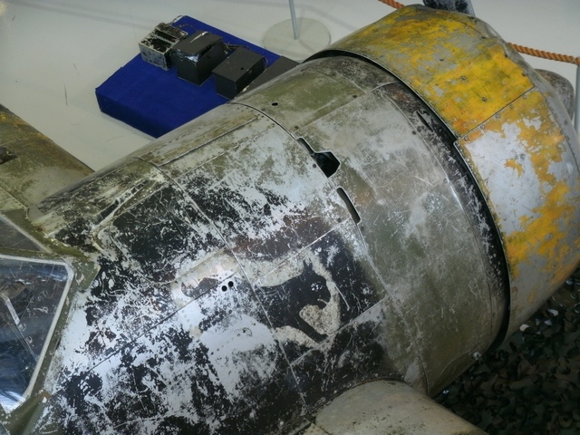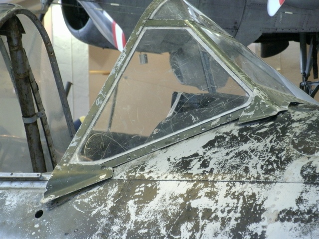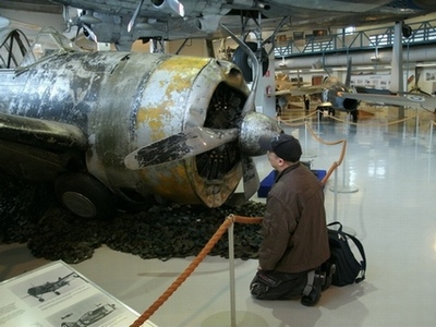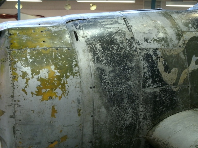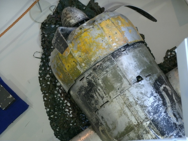 位置を替えて。右主翼上面の機銃パネル内部も観察できる。