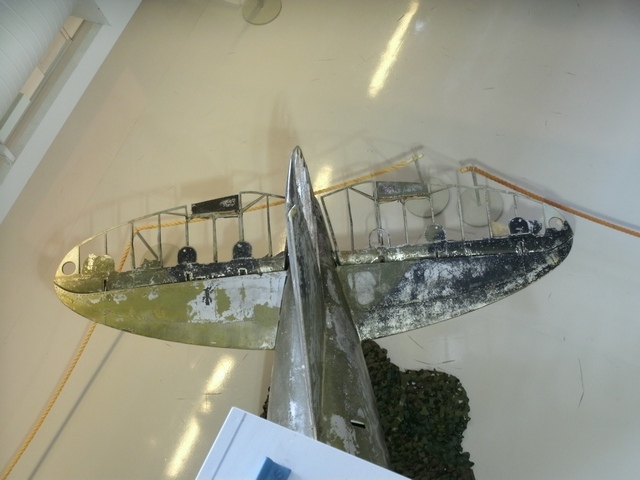 博物館の「空中回廊」から尾翼を真上から見下ろす。